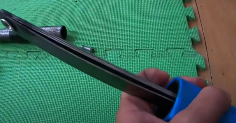 2.扭力桿材質 : 大部分蛇板的扭力桿都是用長條金屬片,疊加後製成的,外觀有點像常見的30cm鐵尺;少見的材質為強化尼龍,為白色半透明狀,由於不會生鏽,相當適合台灣的潮濕天氣。