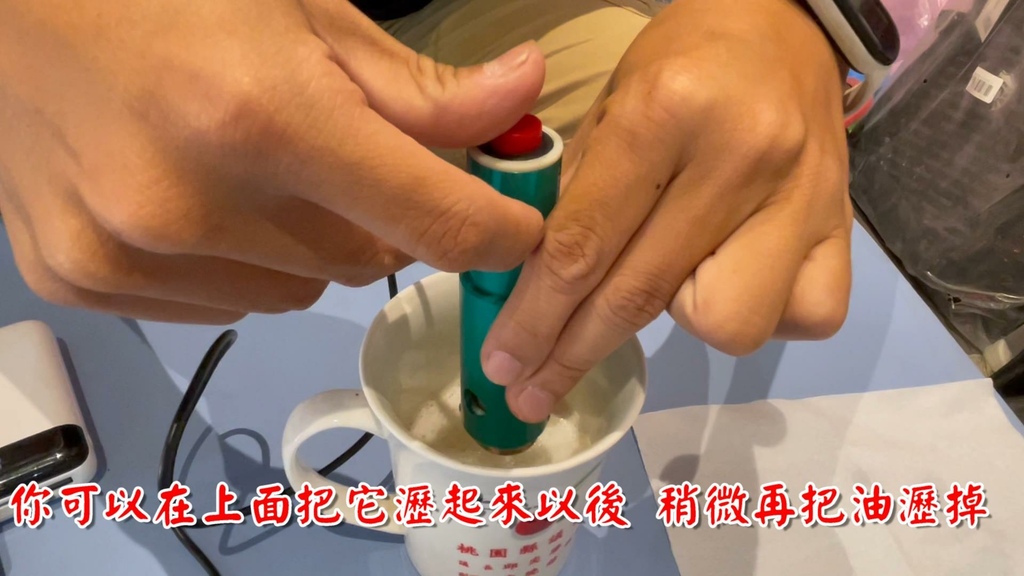 瀝乾後用衛生紙將培林拿起吸乾柴油